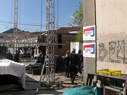 Bez obzira na sve ove nelogičnosti i priče, radnici u centru Vranja neometano vrše montiranje binske opreme i ozvučenja.