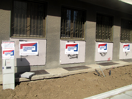 Naprednjaci su se potrudili i da centar bude u znaku njihovih stranačkih obeležja, pa je gotovo čitava šetališna zona oblepljena plakatima sa znakom SNS-a.