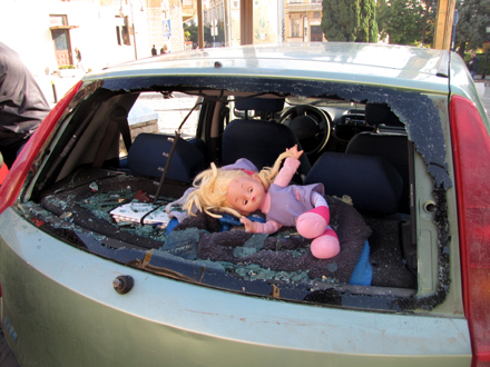 Na vozilima „Opel Corsa“ i „Fiat Punto“, koji su u vlasništvu Stankovića a voze ih njegovi sin i ćerka, potpuno su razbijena bočna leva i zadnja stakla.