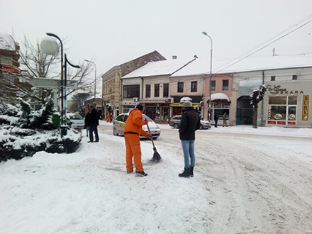 Snega ima na kolovozima, na trotoarima i u pešačkoj zoni.