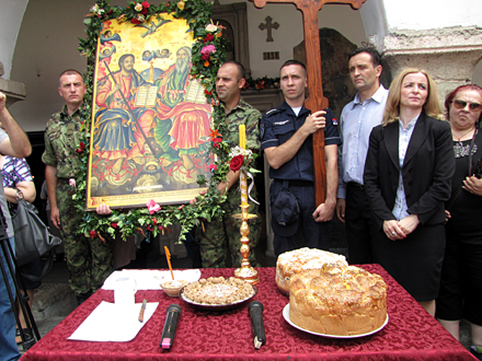 Nakon povratka u Saborni hram SveteTrojice izvršeno je sečenje slavskog kolača.