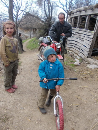 Do jedine kuće u tom zaseoku možete stići jedino ako je put suv, ako nema kiše. Zarije nas čeka na drvenoj klupi ispred škole sa morotom “tomos” i sinom Draganom, četvrogodišnjim, živahnim dečačićem.