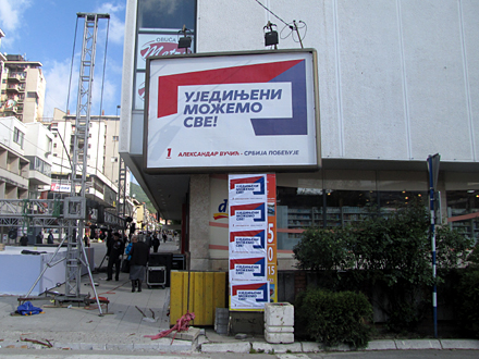 Naprednjaci su se potrudili i da centar bude u znaku njihovih stranačkih obeležja, pa je gotovo čitava šetališna zona oblepljena plakatima sa znakom SNS-a.