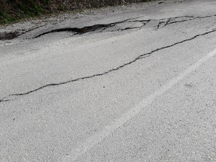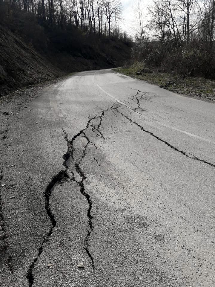 Voda je zemlju svukla do samog puta, pa je asfalt počeo da puca i time ozbiljno ugrožava saobraćaj na ovoj deonici.