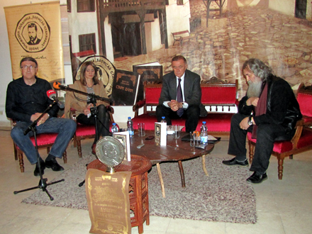 Pisac je vranjskoj publici, koja je ispunila Galeriju Narodnog muzeja pročitao i tri svoje pesme iz zbirke „20 srpskih podela“.
