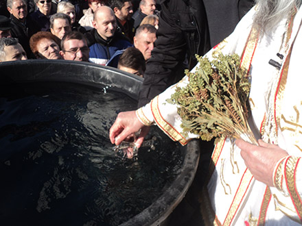 Nakon liturgije, pred punom portom hrama “Svete trojice”, osveštana je bogojavljenska vodica.