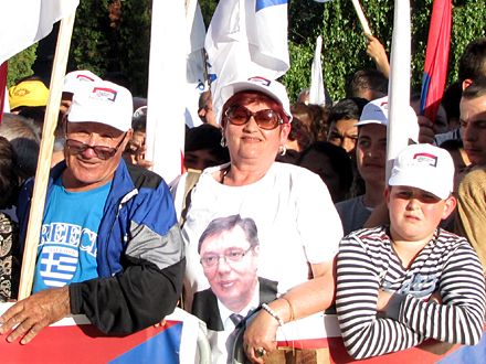 Među masom, pored transparenta, okačenog na Pošti, “Vranje je za Vučića”, bili su tu još i njemu slični, ali drugačije sadržine “Bosilegrad je za Vučića” i “Trgovište je za Vučića”.