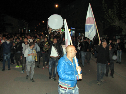 Slavlje se iz prostorija stranke nastavilo na ulicama grada, gde su simpatizeri Aleksandra Vučića uz trubače nastavili ka centru grada.
