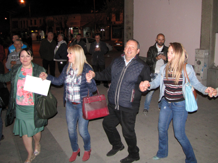 Povorka se zaustavila na platou ispred Robne kuće, gde su naprednjaci poveli kolo.