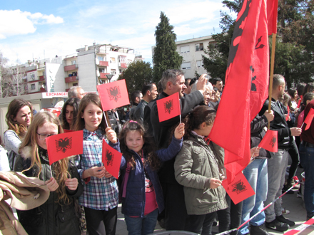 Čim je stigao, Nišani je izazvao delirijum mase, mahanje zastavicama i zastavama Albanije, kao i prekrštanje ruku prisutnih, što simbolizuje orla, koji se nalazi na zastavi ove zemlje.