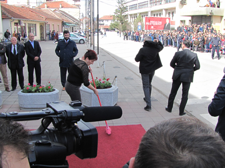 Postavljen je i crveni tepih kojim je Nišani ušao u Skupštinu opštine.