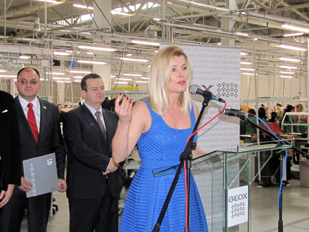 U narednoj rečenici je pokušao da poentira rekavši da, kada radnici "Geoxa" budu šetali svetskim metropolama, videće u izlozima svojih ruku delo.