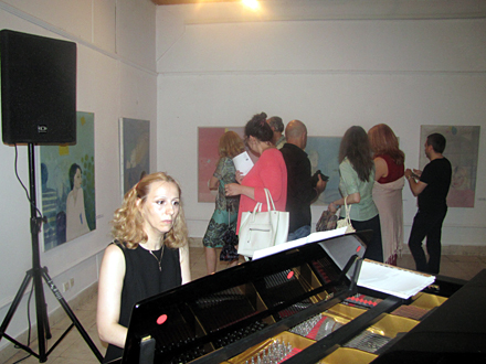 Brojni posetioci su slike gledali uz muziku, koju je na klaviru izvodila Biljana Stošić.