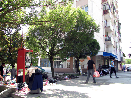 Stare cipele, turske gaće i čarape, sklepana dečija kolica, lutkice iskopanih očiju i ko zna šta sve još, nabacane su sa svih strana solitera, čak i ispred objekta Pošte.