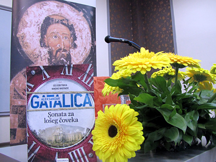 Razgovor sa piscem vodio je pesnik Mileta Aćimović Ivkov, glavni urednik "Književnog magazina", koji je uvodeći prisutne u razgovor o romanu "Sonata za lošeg čoveka", izrekao sopstvenu poslovicu: "Niko nije toliko rđav, koliko to rđav čovek misli".