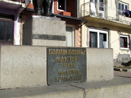 Ispred oskrnavljenog spomenika Bakiji Bakiću na Trgu slobode u Vranju, u sredu, simbolično u pet do 12, protestno okupljanje je organizovalo udruženje koje nosi ime čuvenog trubača.