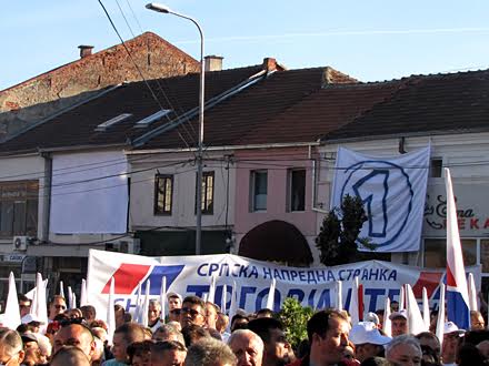 No međutim, fotografije pokazuju suprotno. Negde oko podneva lik Vojislava Šešelja nije bio prekriven, da bi negde pre početka mitinga oba transparenta, i JS i SRS, bila prekrivena, s tim što je na čaršafu kod SRS nacrtan broj jedan, a kod JS, je čaršaf ostao beo.