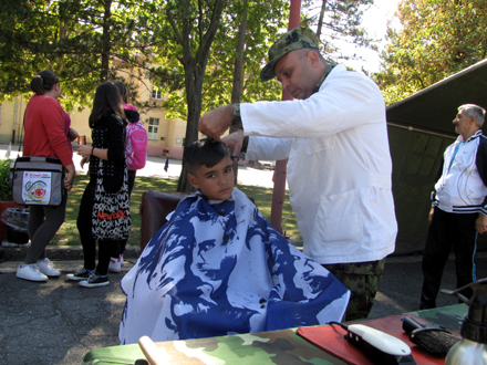 Pored prilike da se fotografišu sa naoružanjem i borbenim vozilima, posetioci su dobili priliku da za uspomenu dobiju i vojničku frizuru.