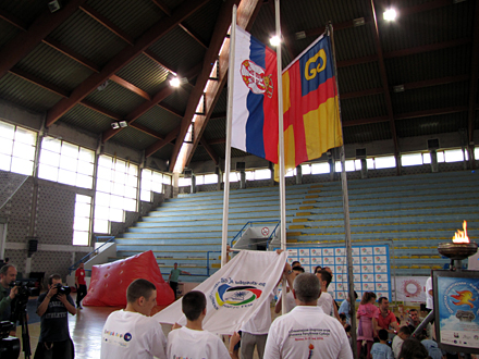 Zatim je olimpijska zastava školskih igara, uz zvuke himne „Bože pravde“, spuštena sa jarbola.
