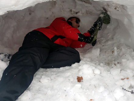 Imali smo i čitav set vežbi upotrebe adekvatne opreme za transport povređenih u snežnim vremenskim nepogodama, zatim obuku za slučaj lavine, kao i izradu igloa.