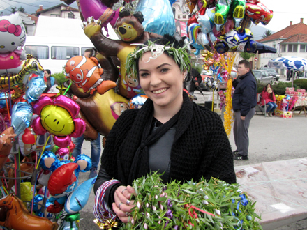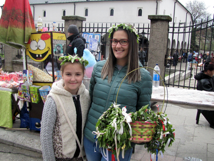 Porta Hrama Svete Trojice u Vranju bila je prepuna dece, roditelja i prodavaca venčića, zvončića i balona.
