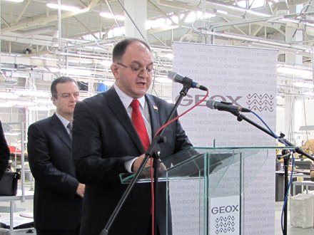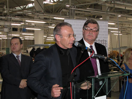 Gospodin Moreti i ambasador Manco su govorili o značaju nove fabrike, ne samo za grad Vranje, već i za celokupni sistem Geox, kao i za dobre odnose Italije i Srbije.