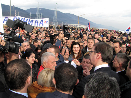 Na kraju svečanosti, Vučić se obratio okupljenim pristalicama SNS-a i najavio otvaranje nove fabrike, ne precizirajući o kojoj fabrici je reč.