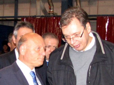 Vučića je kroz pogone „Alfe“ vodio Miroljub Aleksić, vlasnik „Alco grupe“ sa sinom Stefanom, koordinatorom za unapređenje proizvodnje „Alfa plama“.