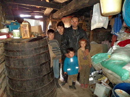 Soba, 4 puta 4 metra i uzan hodnik. U hodniku popustio krov, kad je kiša teči, a zimi sneg je ispred sobe. Tu čuvaju hranu, ali koju? U velikom buretu-kaci gde ne dohvata vlaga je brašno, a ostalo, krompir, pasulj i luka vise sa strane.