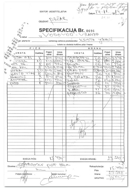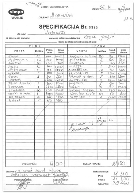 Na računu je Janjićevom rukom napisano „za goste iz Niša i Aleksinca“. Biće da su radnici sa tih strana.